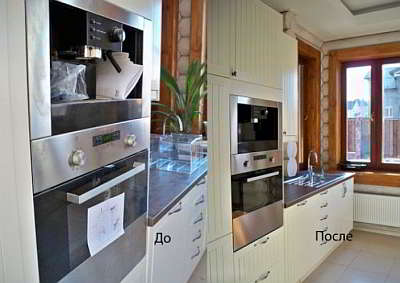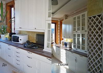 Мойка вертикальных поверхностей кухонных шкафов, протирка холодильника снаружи